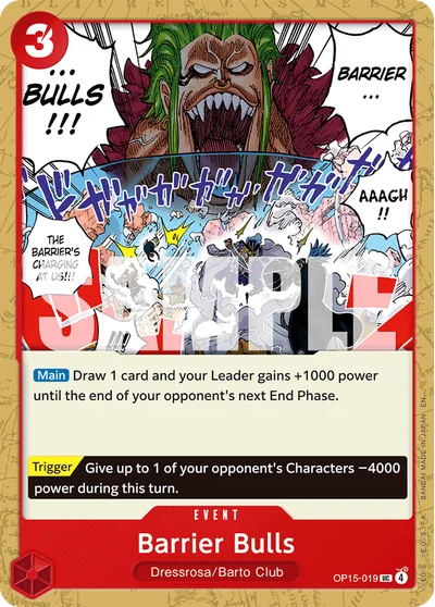 Barrier Bulls (OP15-019) is a Uncommon card from the Adventure on Kamis Island set of the One Piece Card Game.