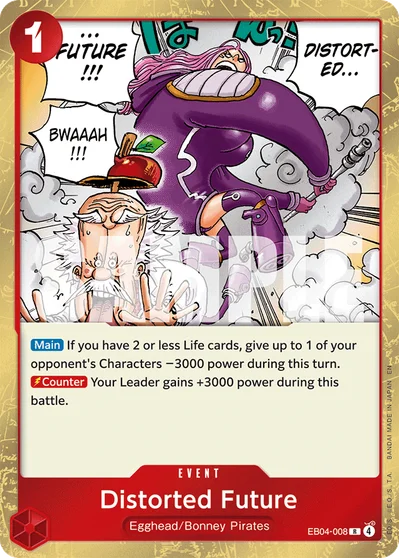 Distorted Future (EB04-008) is a Rare card from the Adventure on Kamis Island set of the One Piece Card Game.