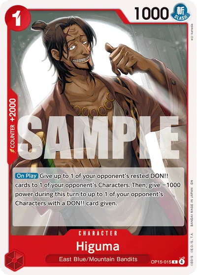 Higuma (OP15-015) is a Common card from the Adventure on Kamis Island set of the One Piece Card Game.