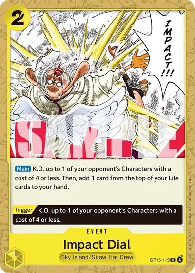 Impact Dial (OP15-115) is a Common card from the Adventure on Kamis Island set of the One Piece Card Game.