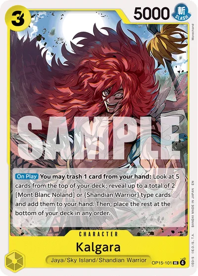 Kalgara (OP15-101) is a Uncommon card from the Adventure on Kamis Island set of the One Piece Card Game.