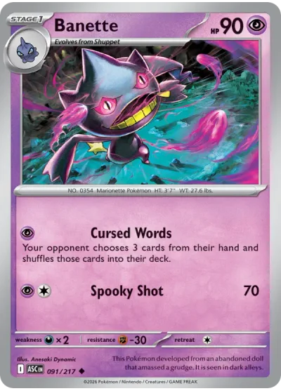 Banette #091 is a Uncommon card from the Ascended Heroes expansion of the Pokémon Trading Card Game. It is part of the Mega Evolution series.