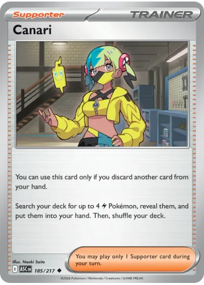Canari #185 is a Uncommon card from the Ascended Heroes expansion of the Pokémon Trading Card Game. It is part of the Mega Evolution series.