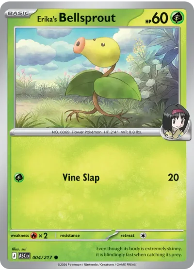 Erika's Bellsprout #004 is a Common card from the Ascended Heroes expansion of the Pokémon Trading Card Game. It is part of the Mega Evolution series.