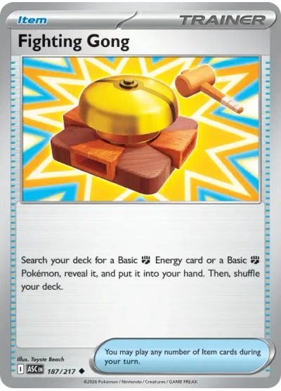 Fighting Gong #187 is a Uncommon card from the Ascended Heroes expansion of the Pokémon Trading Card Game. It is part of the Mega Evolution series.