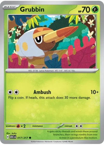 Grubbin #017 is a Common card from the Ascended Heroes expansion of the Pokémon Trading Card Game. It is part of the Mega Evolution series.