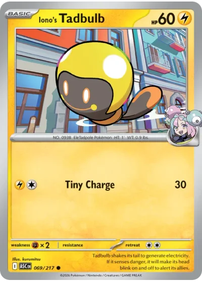Iono's Tadbulb #069 is a Common card from the Ascended Heroes expansion of the Pokémon Trading Card Game. It is part of the Mega Evolution series.