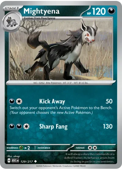 Mightyena #129 is a Uncommon card from the Ascended Heroes expansion of the Pokémon Trading Card Game. It is part of the Mega Evolution series.