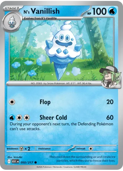 N's Vanillish #050 is a Common card from the Ascended Heroes expansion of the Pokémon Trading Card Game. It is part of the Mega Evolution series.
