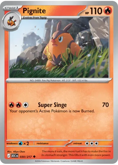 Pignite #030 is a Uncommon card from the Ascended Heroes expansion of the Pokémon Trading Card Game. It is part of the Mega Evolution series.