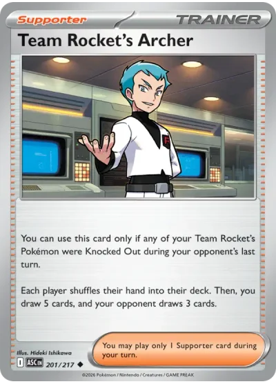 Team Rocket's Archer #201 is a Uncommon card from the Ascended Heroes expansion of the Pokémon Trading Card Game. It is part of the Mega Evolution series.