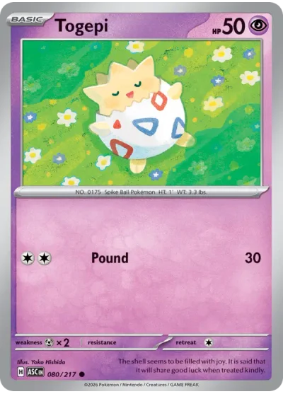 Togepi #080 is a Common card from the Ascended Heroes expansion of the Pokémon Trading Card Game. It is part of the Mega Evolution series.