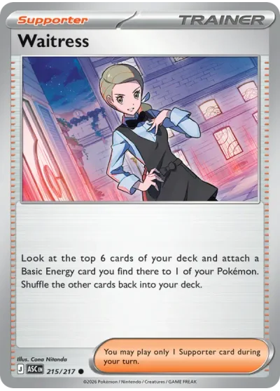 Waitress #215 is a Common card from the Ascended Heroes expansion of the Pokémon Trading Card Game. It is part of the Mega Evolution series.