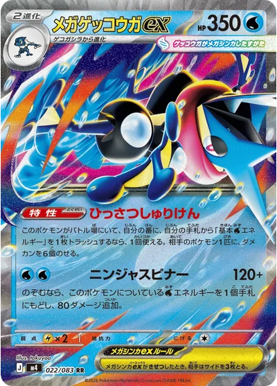 Mega Greninja ex #22 is a Double Rare card from the Chaos Rising expansion of the Pokémon Trading Card Game. It is part of the Mega Evolution series, making it one of the harder cards to pull from a booster pack.