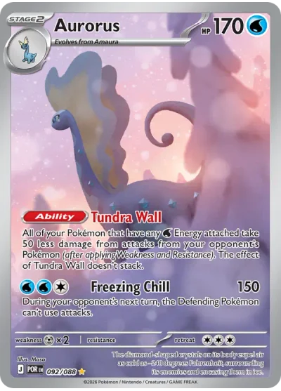 Aurorus #092 is a Illustration rare card from the Perfect Order (ME3) expansion of the Pokémon Trading Card Game. It is part of the Mega Evolution series, making it one of the harder cards to pull from a booster pack.