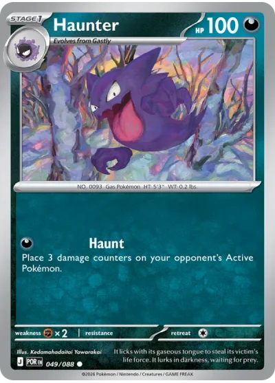 Haunter #049 is a Common card from the Perfect Order (ME3) expansion of the Pokémon Trading Card Game. It is part of the Mega Evolution series.