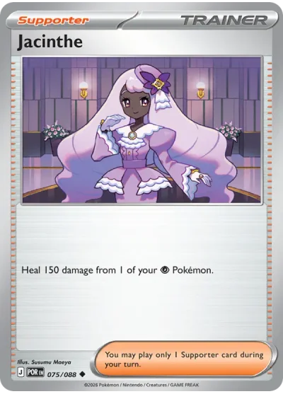 Jacinthe #075 is a Uncommon card from the Perfect Order (ME3) expansion of the Pokémon Trading Card Game. It is part of the Mega Evolution series.