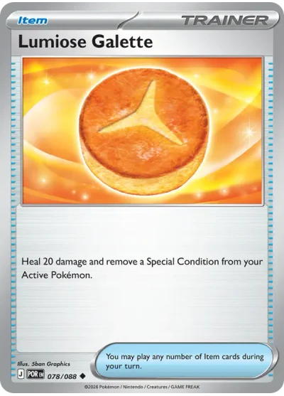 Lumiose Galette #078 is a Uncommon card from the Perfect Order (ME3) expansion of the Pokémon Trading Card Game. It is part of the Mega Evolution series.
