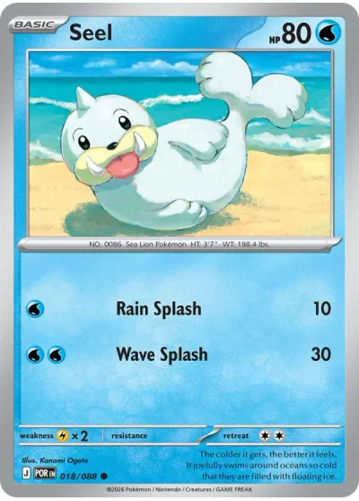 Seel #018 is a Common card from the Perfect Order (ME3) expansion of the Pokémon Trading Card Game. It is part of the Mega Evolution series.