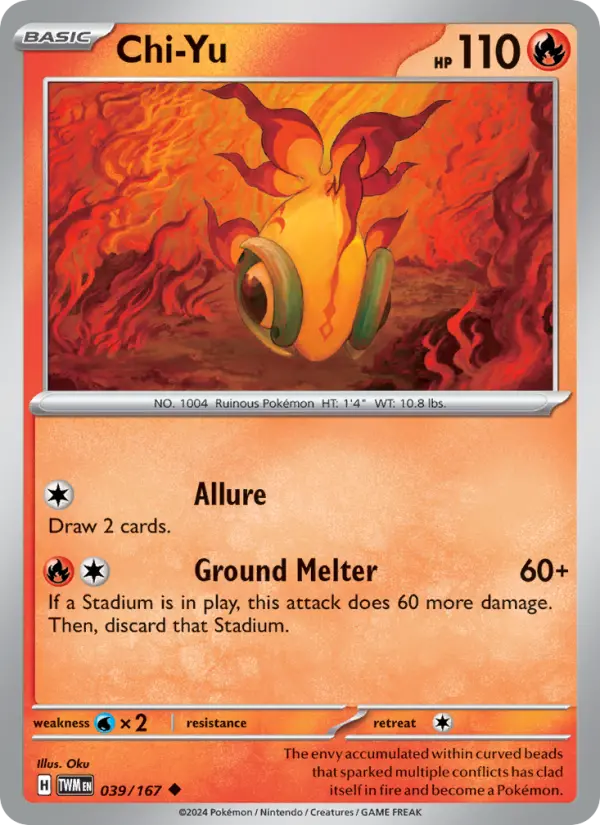 Chi-Yu #039 is a Uncommon card from the Twilight Masquerade (SV6) expansion of the Pokémon Trading Card Game. It is part of the Scarlet & Violet series.
